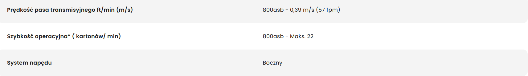 Wydajność i stabilność: Zaklejarka może obsłużyć do 22 kartonów na minutę, co znacząco przyspiesza proces pakowania. Boczny napęd z pasami sprężynowymi gwarantuje płynne i stabilne prowadzenie kartonów przez maszynę, minimalizując ryzyko zacięć czy uszkodzeń.