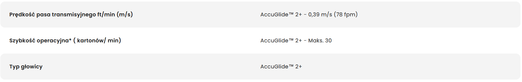 zapewnia płynną i równomierną aplikację taśmy, co gwarantuje szczelne zamknięcie opakowania.