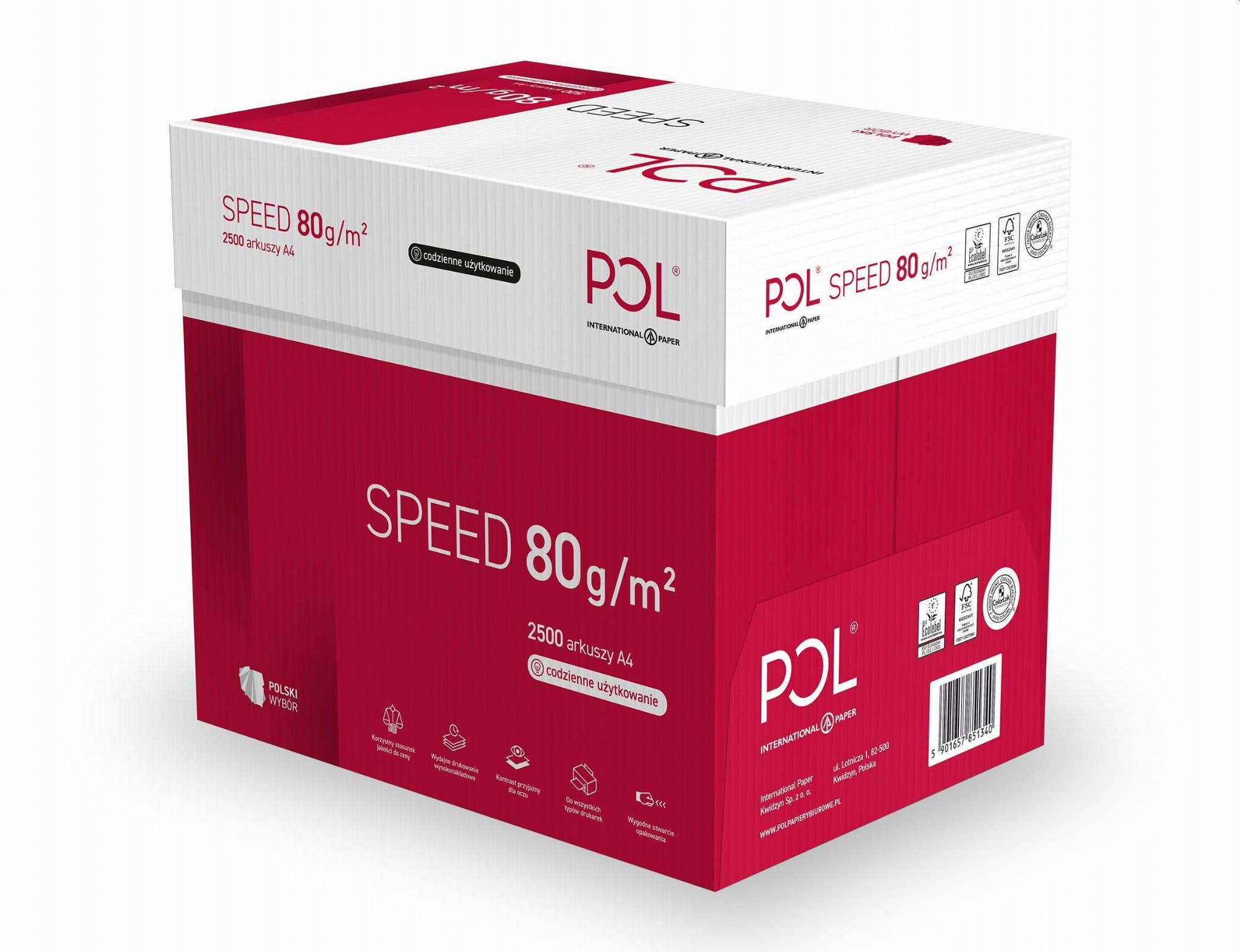 Papier POLSPEED A4 to biały papier o standardowym formacie A4 i gramaturze 80g/m2. Znakomicie spełni swoją rolę jako papier do drukarki, papier do wykonywania kserokopii, a także jako papier do pisania i zastosowań plastycznych. Odpowiedni poziom bieli pozwala na dobre odwzorowanie barw w druku kolorowym oraz poziom kontrastu w druku czarno-białym. Jest idealny zarówno do drukarek atramentowych jak i laserowych, świetnie sprawdza się jako papier xero.