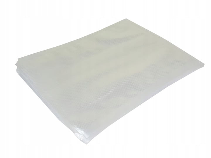 Oferowane worki wykonane są z dwuwarstwowej, moletowanej folii poliamidowo-polietylenowej (PA/PE) o grubości 90μm.